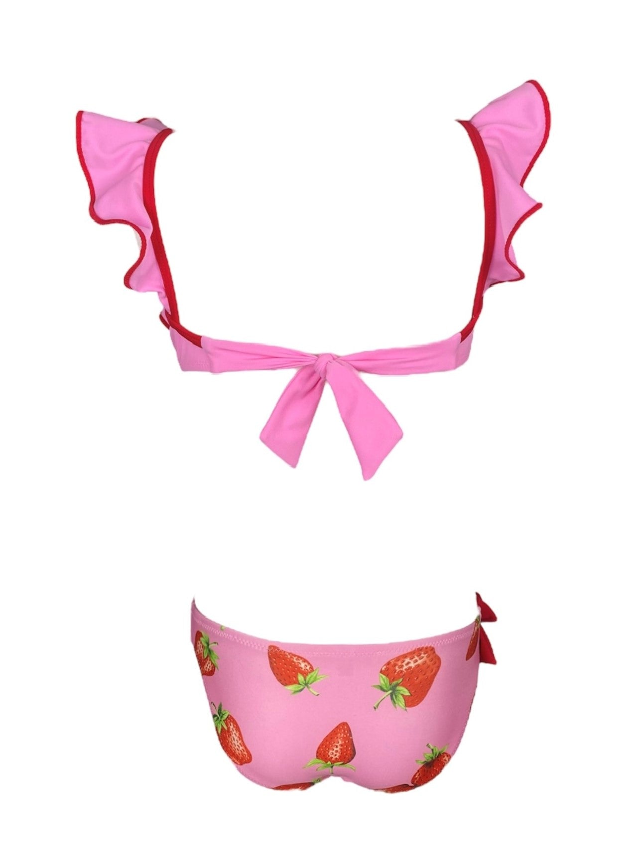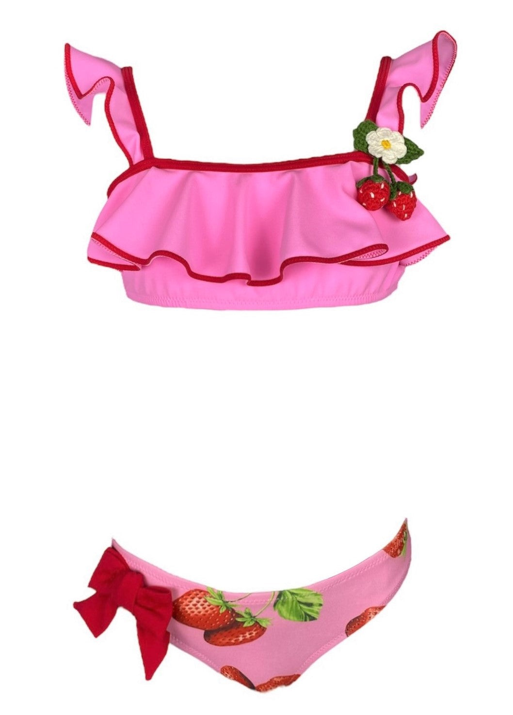 ARINA -Kids' Ruffle Hand-Crochet 3D Strawberry Detail Two-Piece Swimsuit