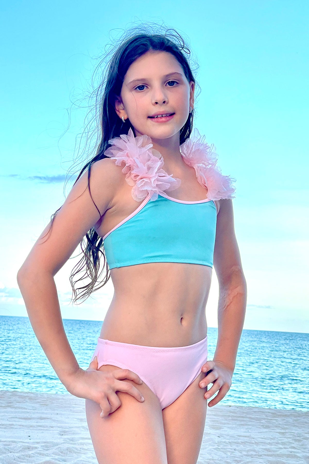 FARAH - Kids' One Shoulder Multi-Layered Ruffle Two-Piece Swimsuit