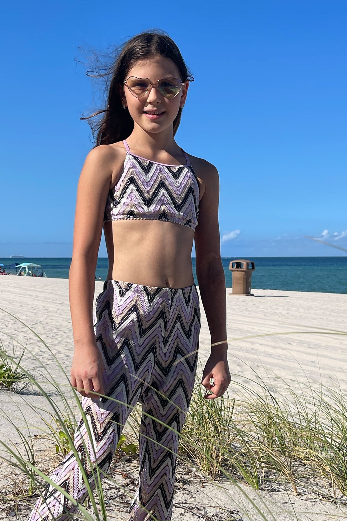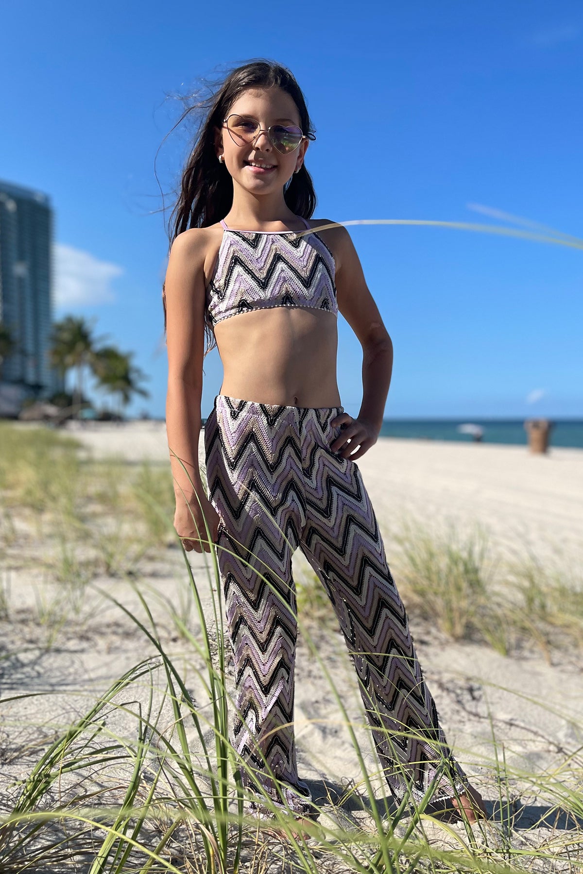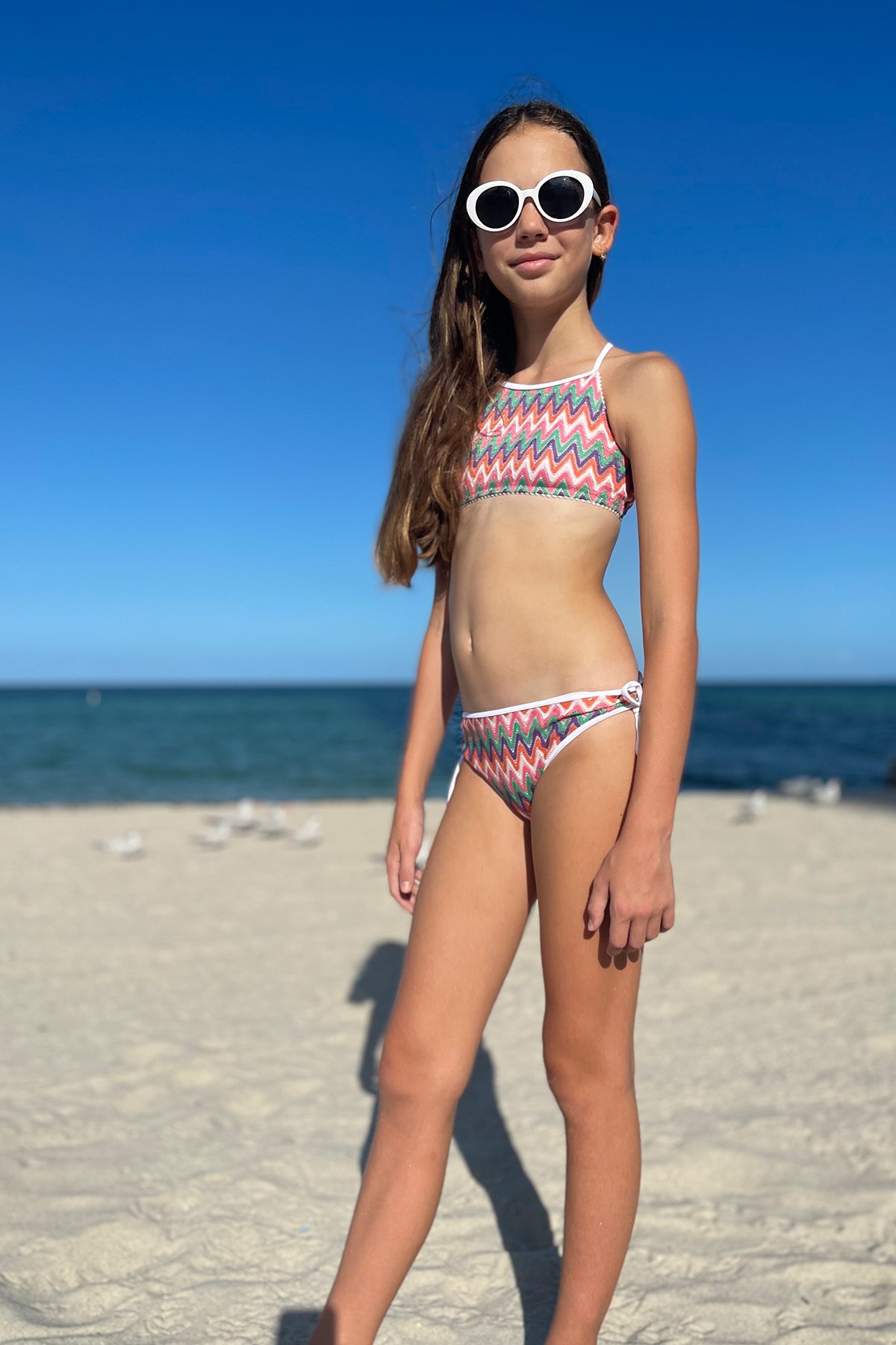 Dalia - Kids' Multicolor Zig-Zag Print Long Sleeve One-Piece Rashguard Swimsuit
