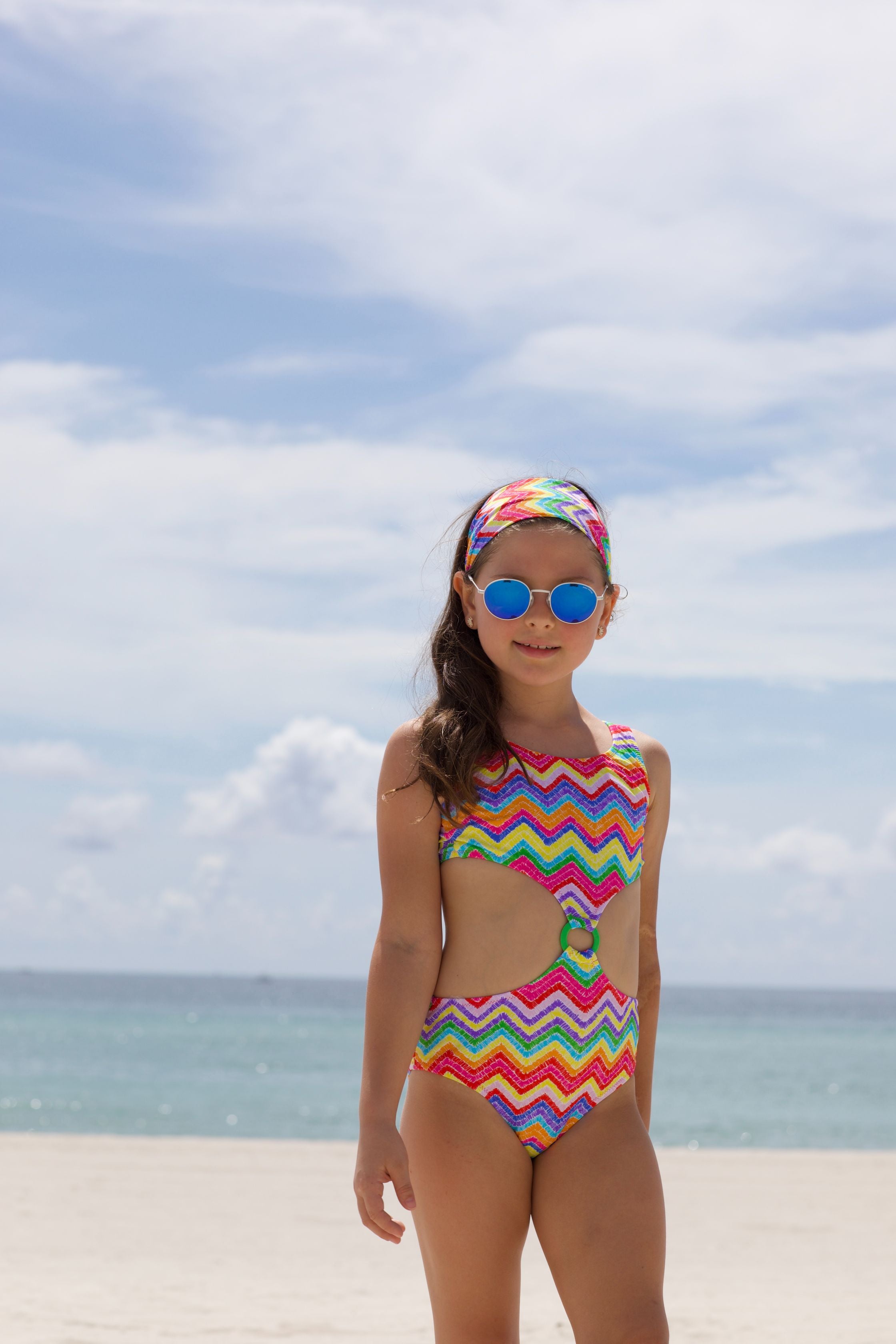 Whether your little girl is a budding fashionista or just loves to play in the water, our multicolor zigzag pattern printed uniqe swimsuit is the perfect choice. So why wait? Order yours today and get ready to make a splash this summer!