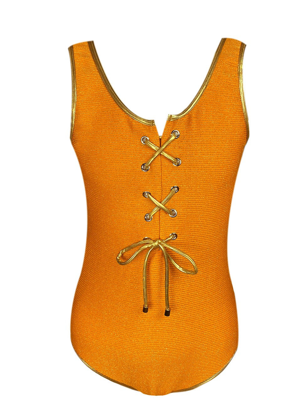 Crafted from high-quality Italian stretchy fabric, this swimsuit is designed to provide a comfortable and perfect fit for your girl. The gold piping detail adds a trendy touch, while a playful and luxury look with an open back design for extra comfort in the sun.