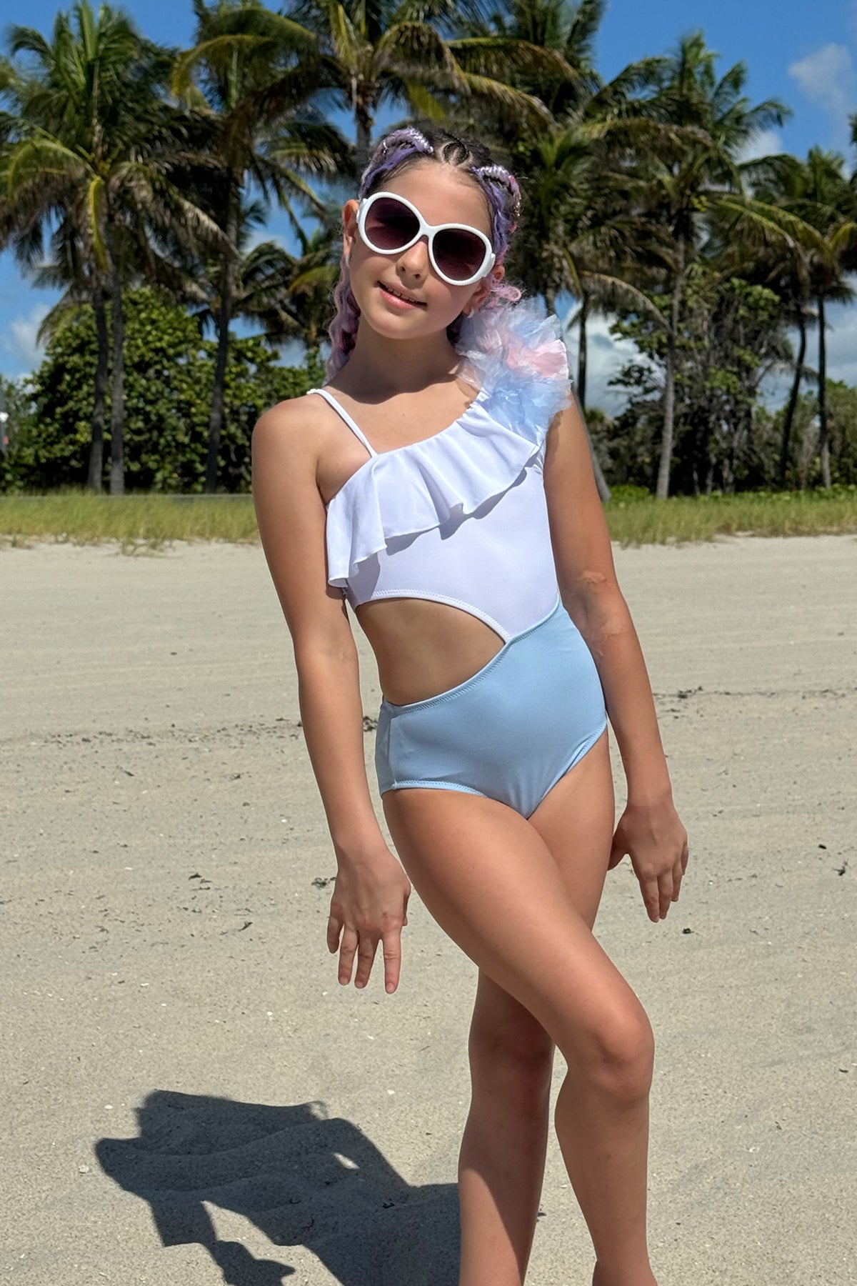 FARAH - Kids' One Shoulder Multi-Layered Ruffle Two-Piece Swimsuit