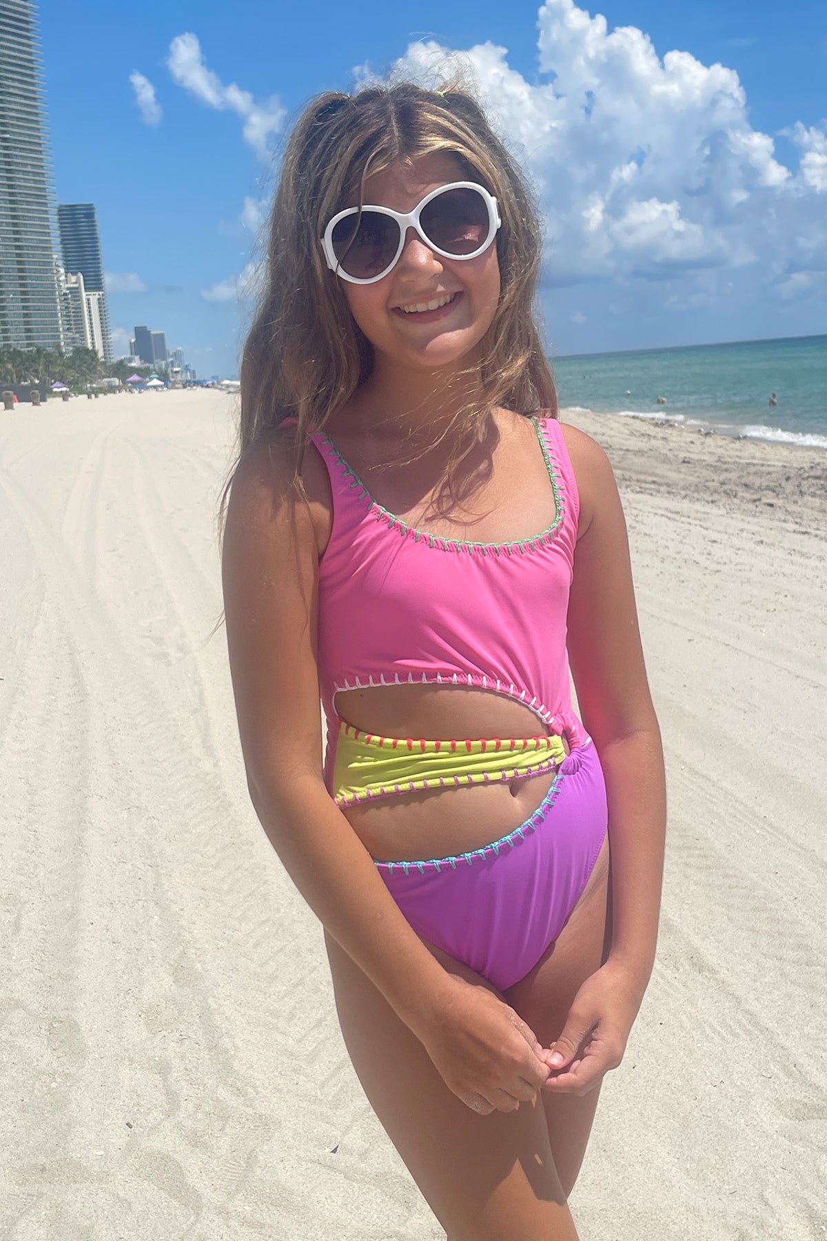 Dalia - Kids' Multicolor Zig-Zag Print Long Sleeve One-Piece Rashguard Swimsuit