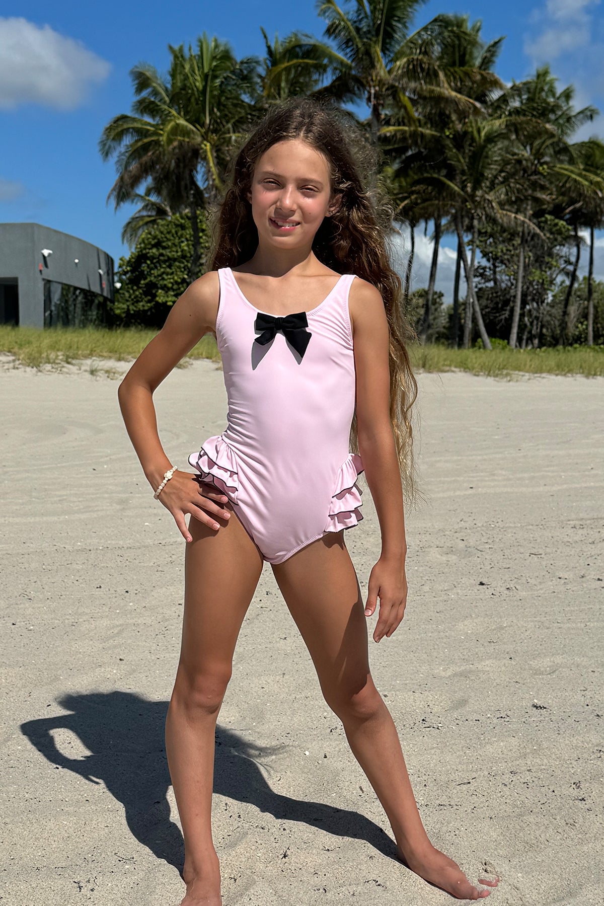 ASAMI Jellybean Print Sleeveless Ruffle Waist One-Piece Swimsuit