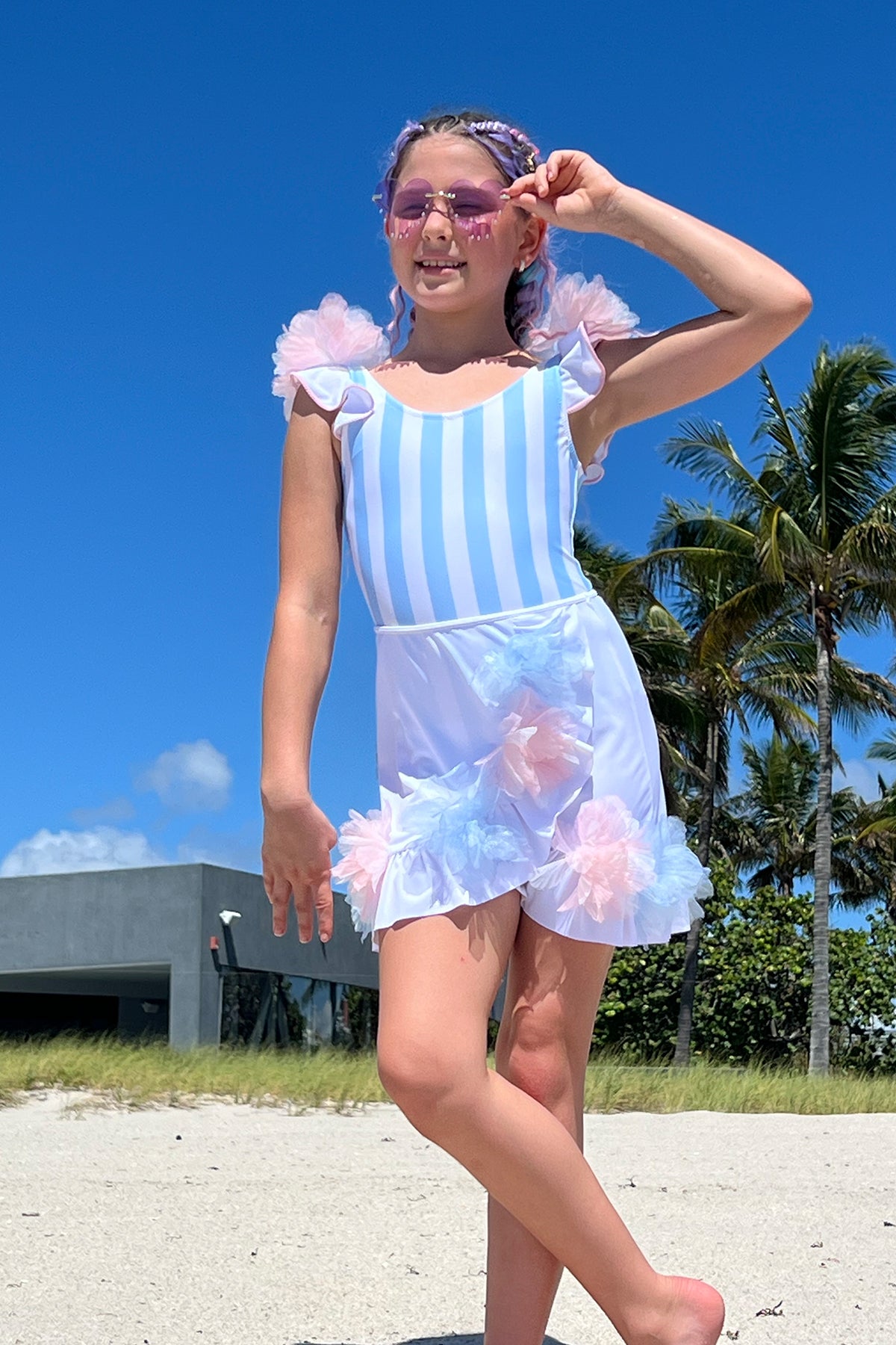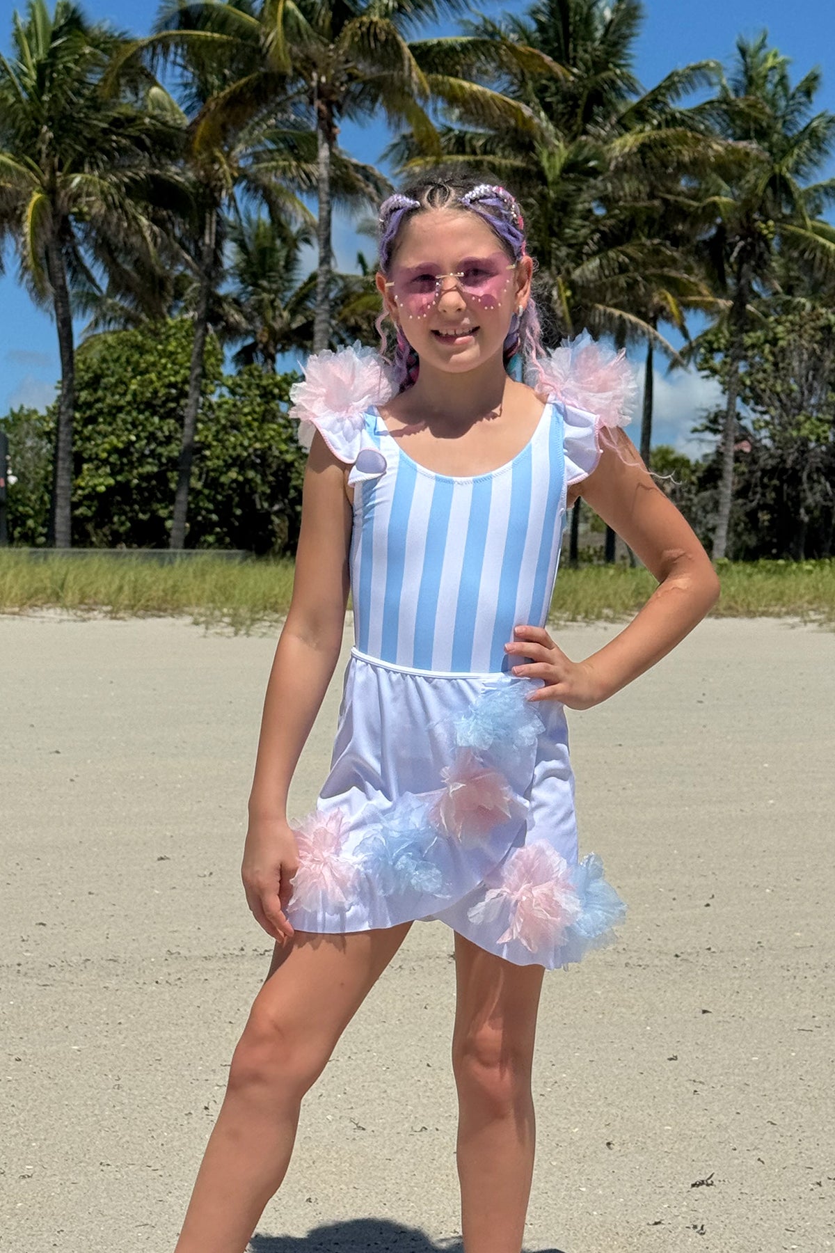 ASAMI Jellybean Print Sleeveless Ruffle Waist One-Piece Swimsuit