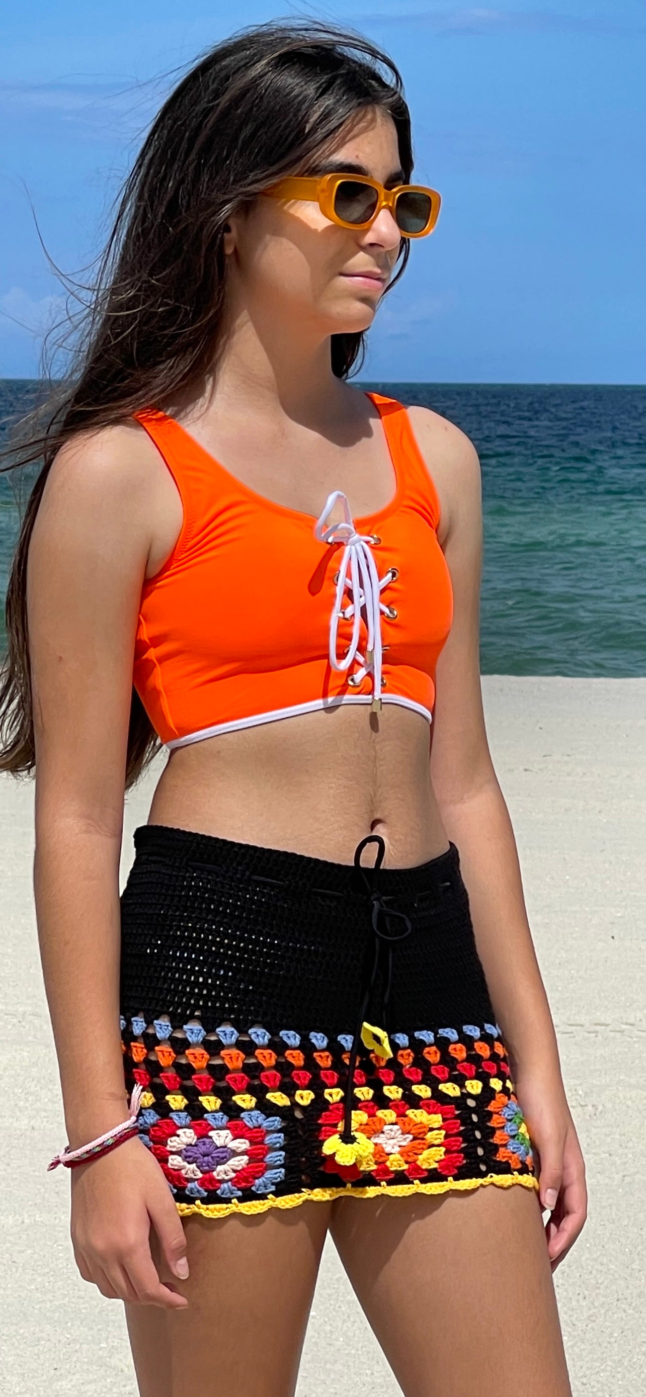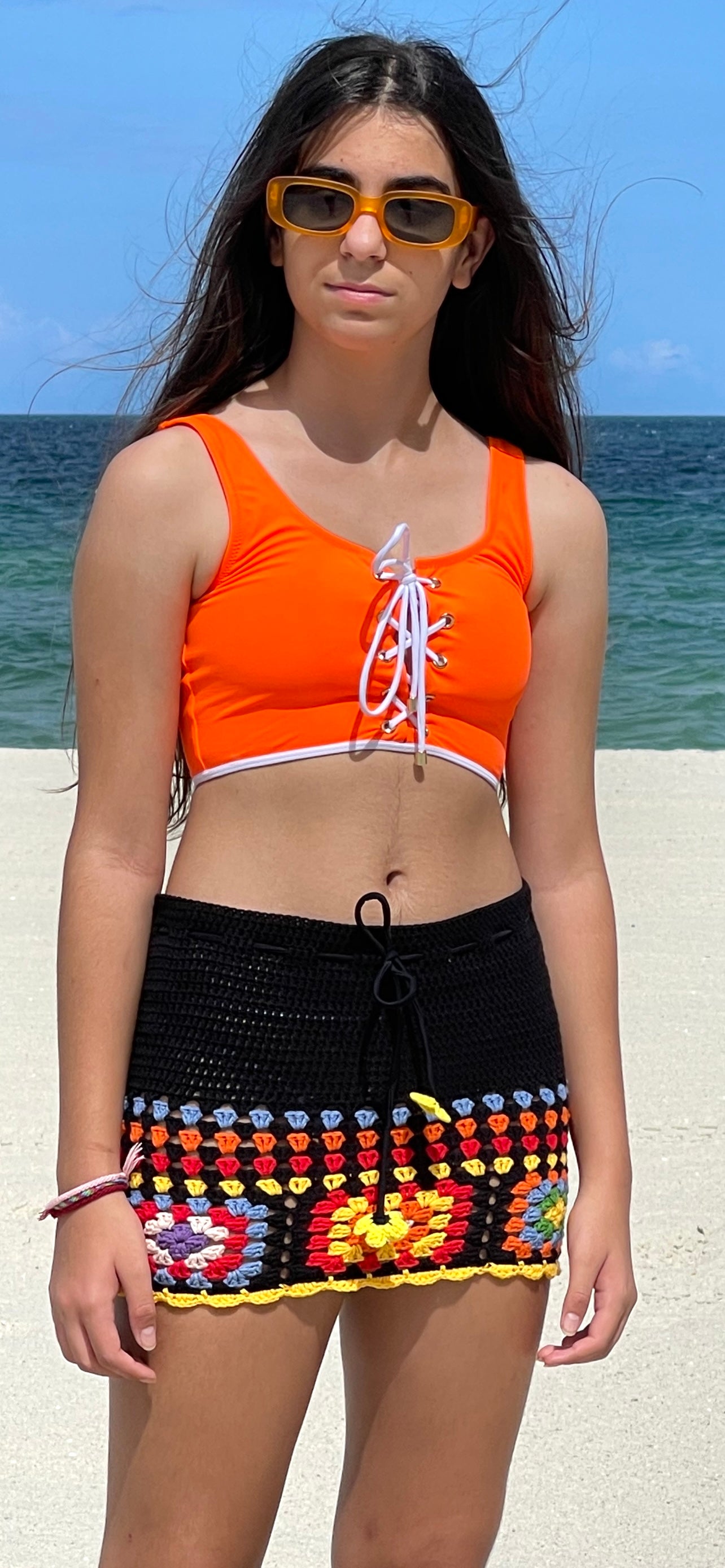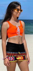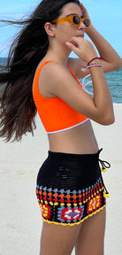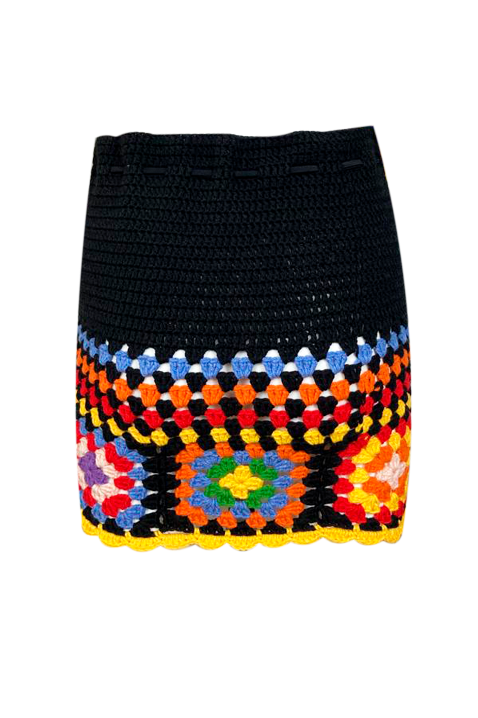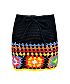 BRITNEY BLACK - Kids' Floral Pattern Hand-Crochet Black Skirt-Cover Up