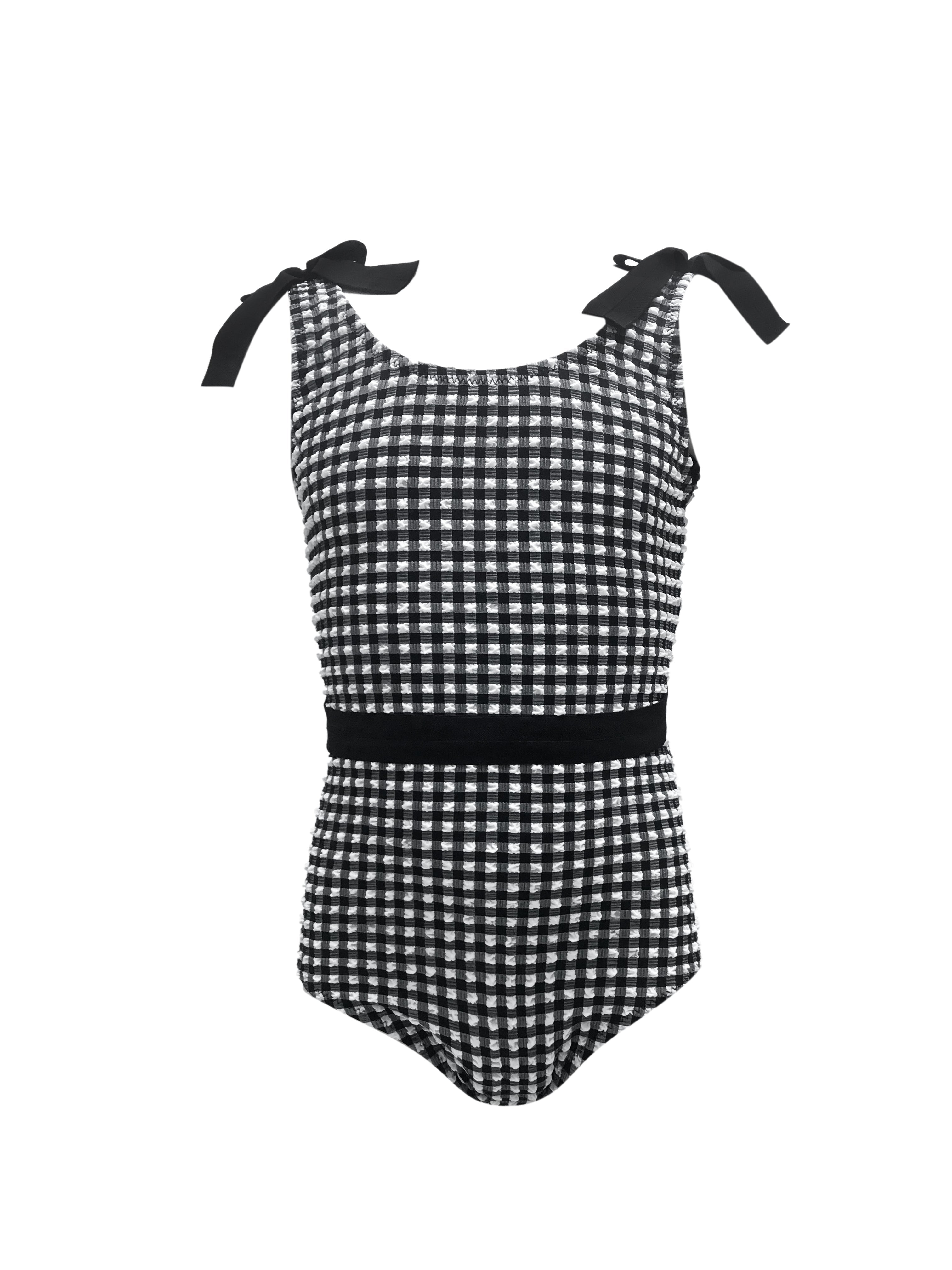 Forseti Textured Gingham Tie-Shoulder Belted One-Piece Swimsuit