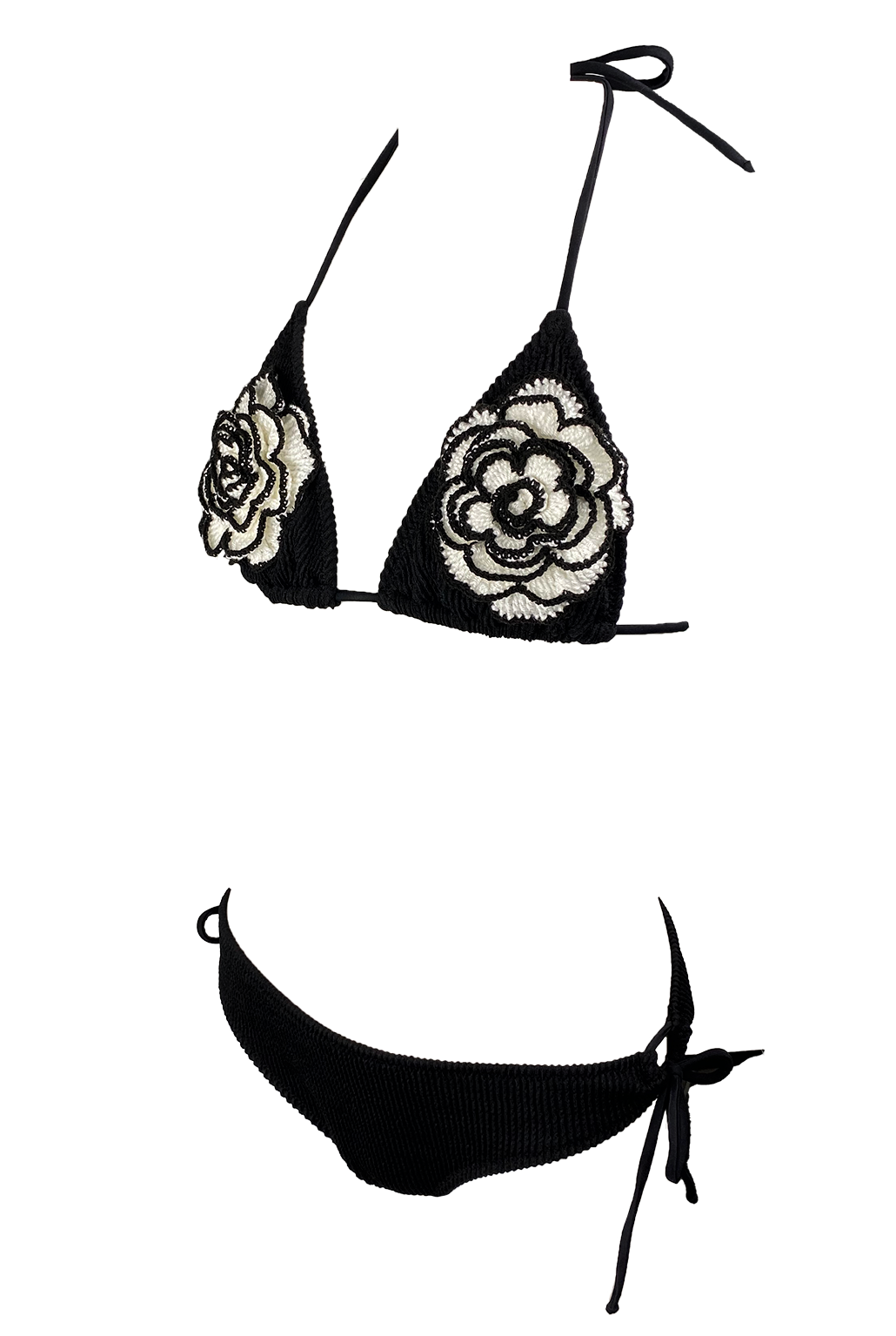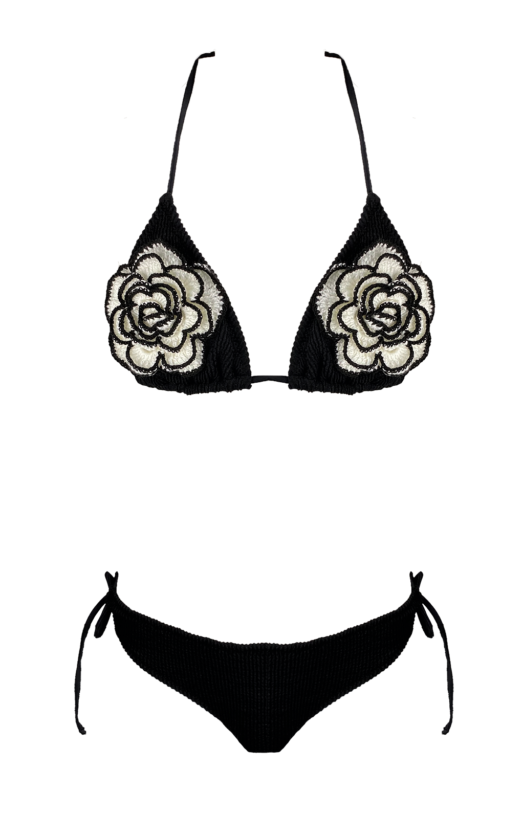 Looking for a stylish swimsuit for your little girl? This bikini is designed for both fashion and function with its eye-catching, offering hand-made flowers front of. Adjustable halterneck at the waist and adjustable tie.